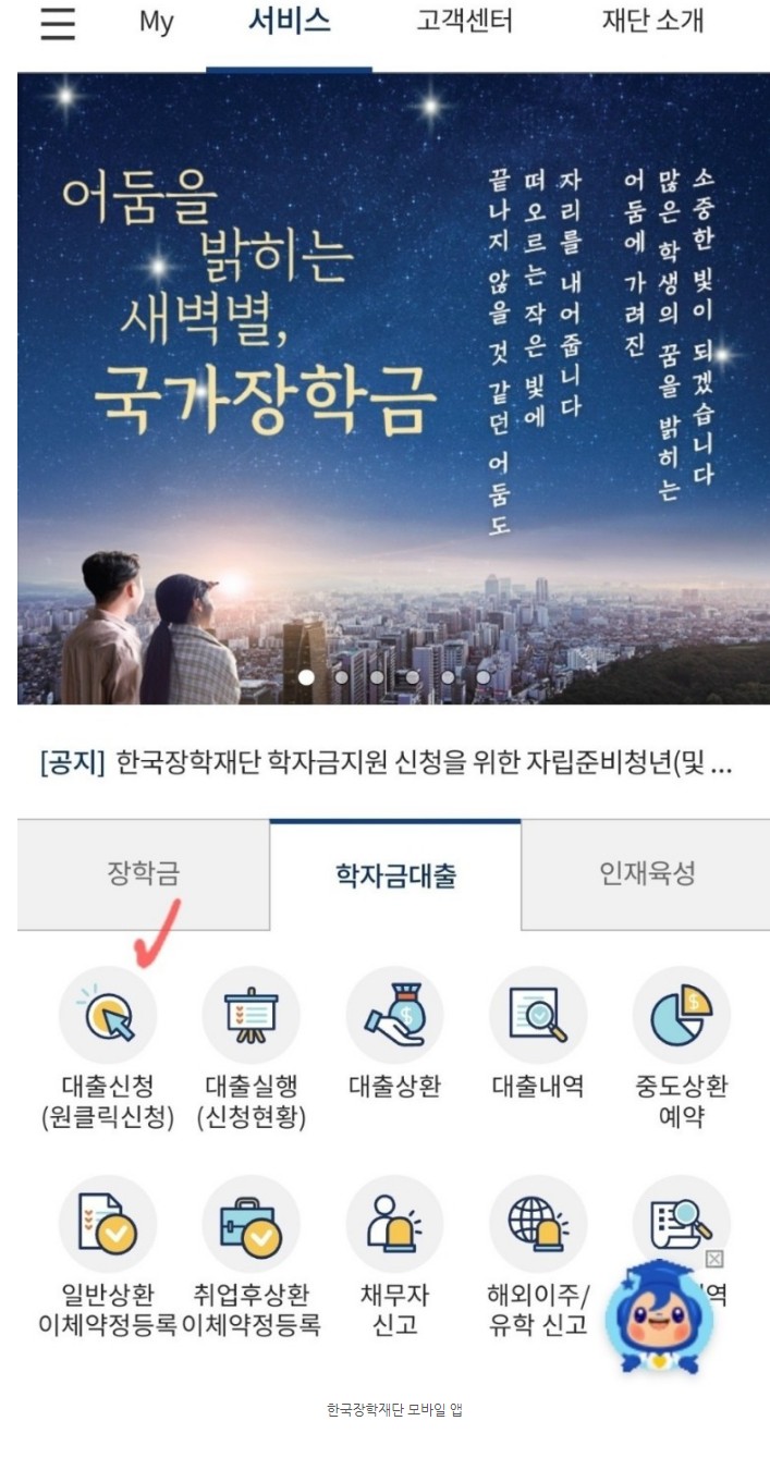 | 학자금대출 신청을 위해본인 명의의 전자서명수단 발급 |